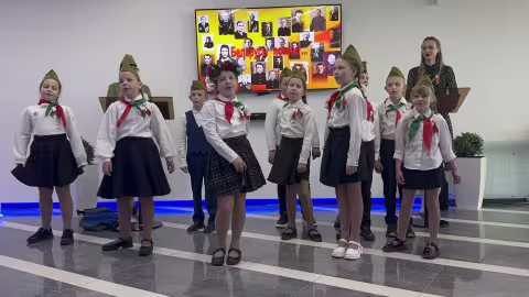 Открыть мероприятие  с литературно-музыкальной композицией, посвященной "80 летию "Великой Победы", выпала честь детскому коллективу  средней школы № 15 г. Минска. Под    руководством  классного руководителя Кухарчик  Ирины Ивановны и аккомпаниатора-баяниста   Шут  Ольги Николаевны.  Ребята не только душевно  пели  песни военных лет, вызывая слезы на глазах, но даже смогли подготовить   миниатюру на стихи Т.И. Соломко «Внук связиста», чем очень удивили и порадовали гостей.