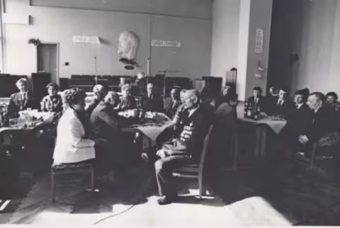 «Все для фронта – все для Победы!» - таков был лозунг тружеников тыла во время войны. Они на своих, порой очень юных, плечах с честью вынесли неимоверный груз по бесперебойному снабжению армии вооружением и боеприпасами, продовольствием и обмундированием. На нашем предприятии тоже работали такие люди. Родина высоко оценила труд наших ветеранов Равикович Сары Моисеевны ( на 3 фото 4 справа) и Соршера Бориса Григорьевича ( на следующем фото), наградив их медалью «За доблестный труд в Великой отечественной войне». Борис Григорьевич с августа 1941 по ноябрь 1945 работал на заводе имени Сталина на станции Безымянка в Казахстане. Вера Григорьевна Зубова и Елена Антоновна Шатерник за работу в тылу были награждены медалью «За победу над Германией». В те годы начальником РМТС была Покрышко Любовь Михайловна, которая рассказала, как трудятся наши ветераны войны и Советской Армии.